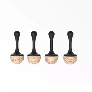 Kit created in collaboration with Lluc Crusellas to decorate pralines made using the Semisfera 01-P mould (52.913.86.0165). The kit includes 4 plastic handles and 4 silicone stamps featuring 4 different designs to create original heart-themed decorations. The handle fits perfectly into the square cavity on the stamp, ensuring maximum stability during the decoration process. Stamp dimensions: ø31 h 19 mm | ø1.22 h 0.75''