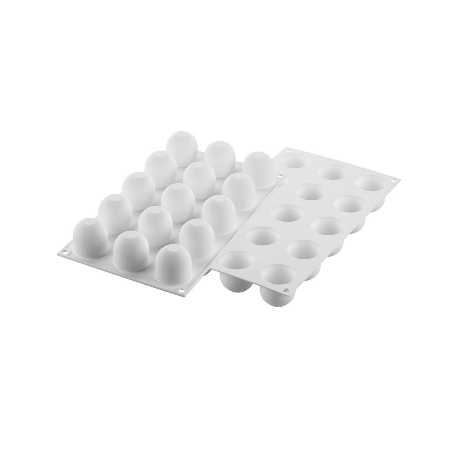 Roundish and harmonic lines make Dome 40 a refined and timeless mould for mignons. Dome40 is composed by 15 cavities of 40 ml volume each. Perfect for glazed or velvety semifreddos, but also baked preparations.